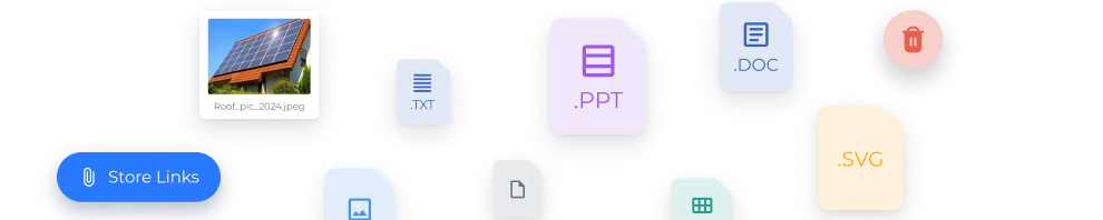 You can manage all types of customer documents such as bills, proposals, agreements, production reports, plans, site pictures, video or other types of media for
